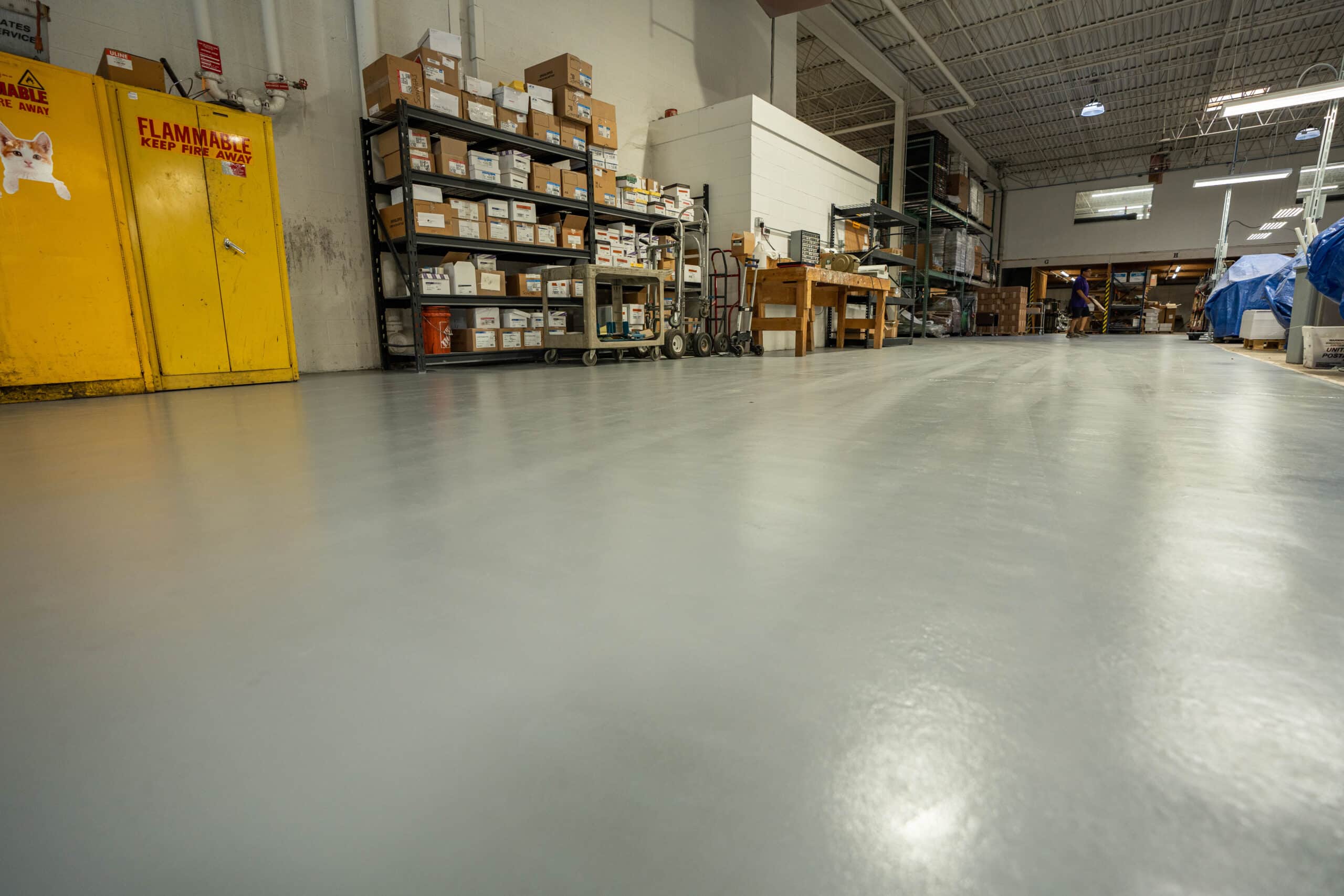 Sleek polished concrete floor reflecting overhead lights.